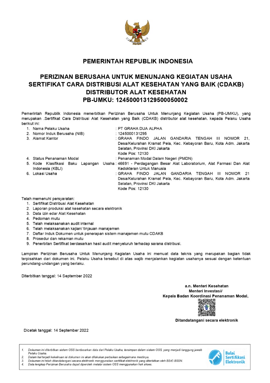 PT. Graha Dua Alpha memiliki pengalaman lebih dari 20 tahun di bidang distribusi alat-alat kesehatan baik lokal maupun import serta pengadaan barang dan jasa. Selain pengadaan barang dan jasa, PT Graha Dua Alpha juga bergerak di bidang usaha real estate dan developer.
